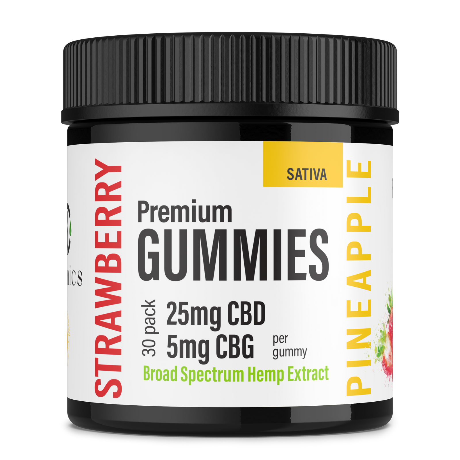 Strawberry Pineapple CBD Gummies: 25mg CBD + 5mg CBG | THC-Free Wellness